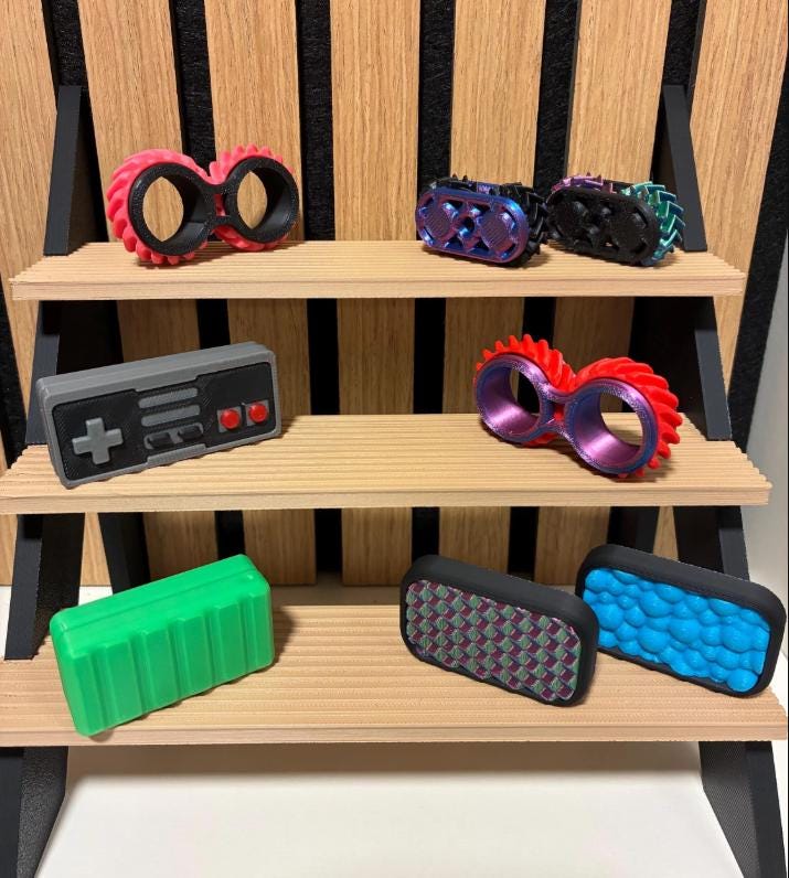Entdecke jetzt unsere 3D-gedruckten Fidget Toys – stylische Anti-Stress-Spielzeuge, die dir helfen, Konzentration zu steigern und Nervosität abzubauen. Jedes Stück wird mit moderner 3D-Drucktechnologie gefertigt und überzeugt durch innovative Designs, hochwertige Materialien und angenehme Haptik. Perfekt fürs Büro, die Schule oder einfach zum Entspannen zwischendurch. 👉 Jetzt Fidget Toys im Shop kaufen!