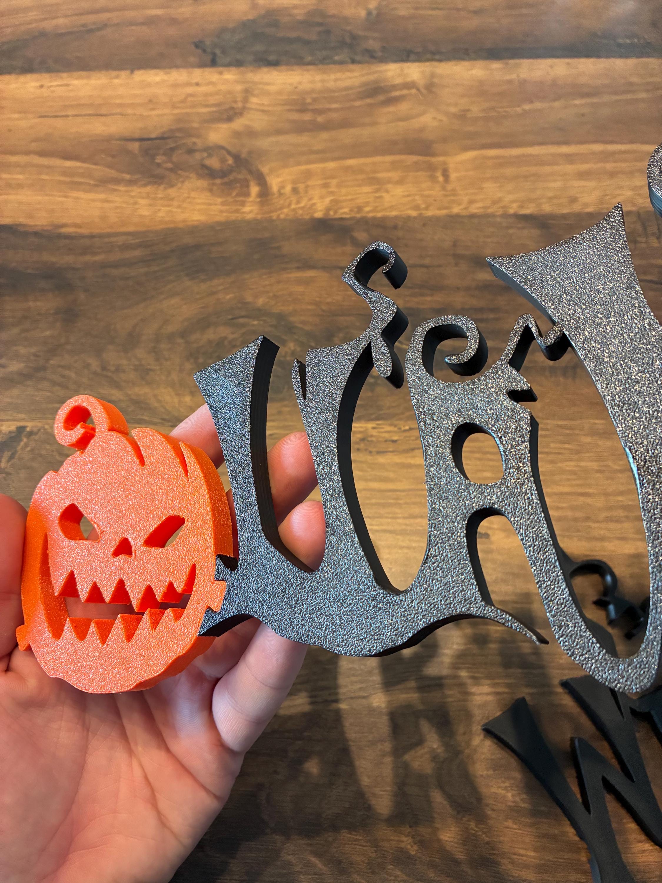 Made from high-quality PLA plastic using a 3D printing process, the lettering is lightweight, sturdy, and reusableβperfect for your annual fall and Halloween decorations.