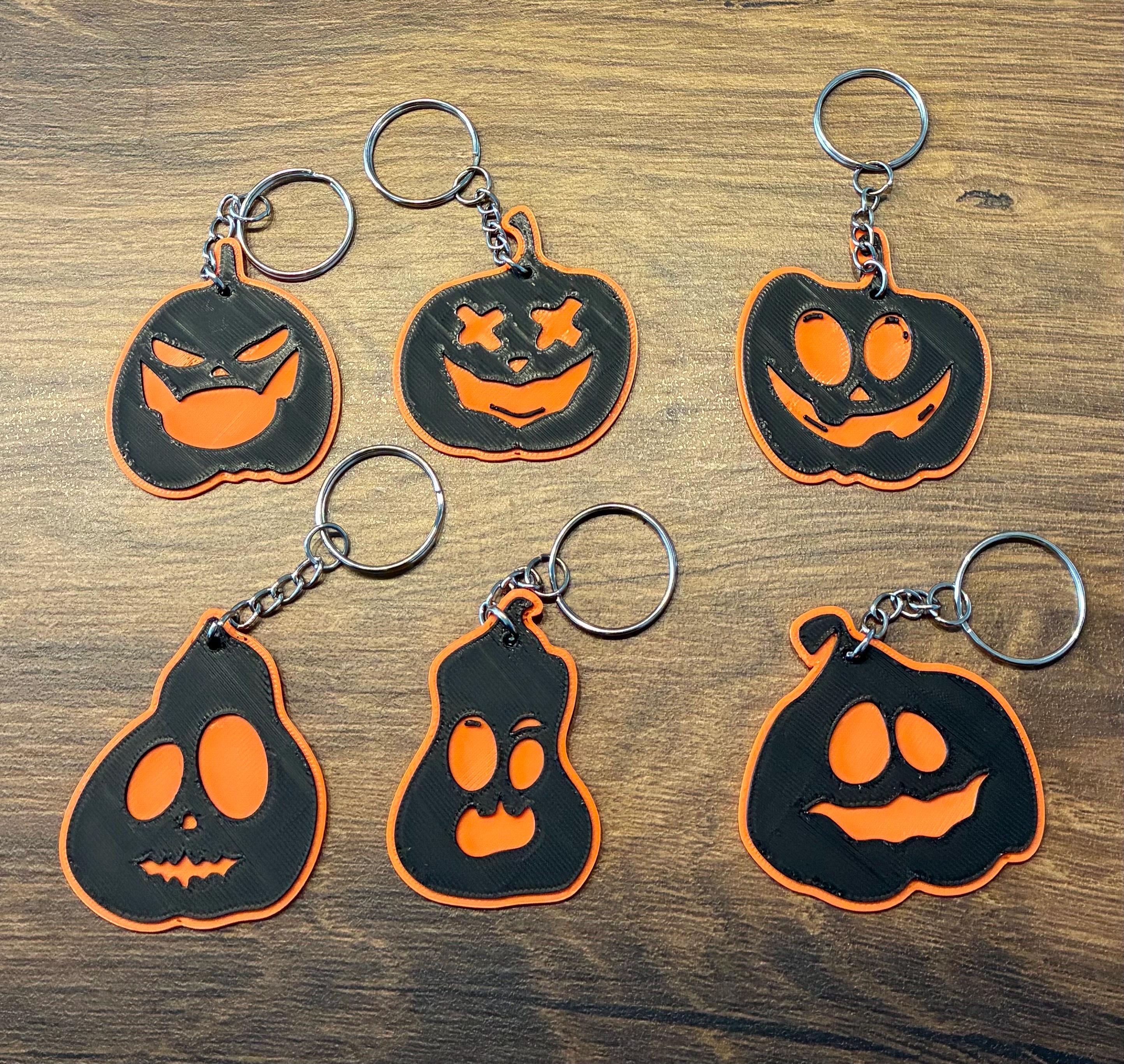 These detailed 3D-printed pumpkin keychains are the perfect little treat for Halloween! Each keychain features a different funny or spooky pumpkin face—ideal as a keychain, bag charm, or backpack decoration.