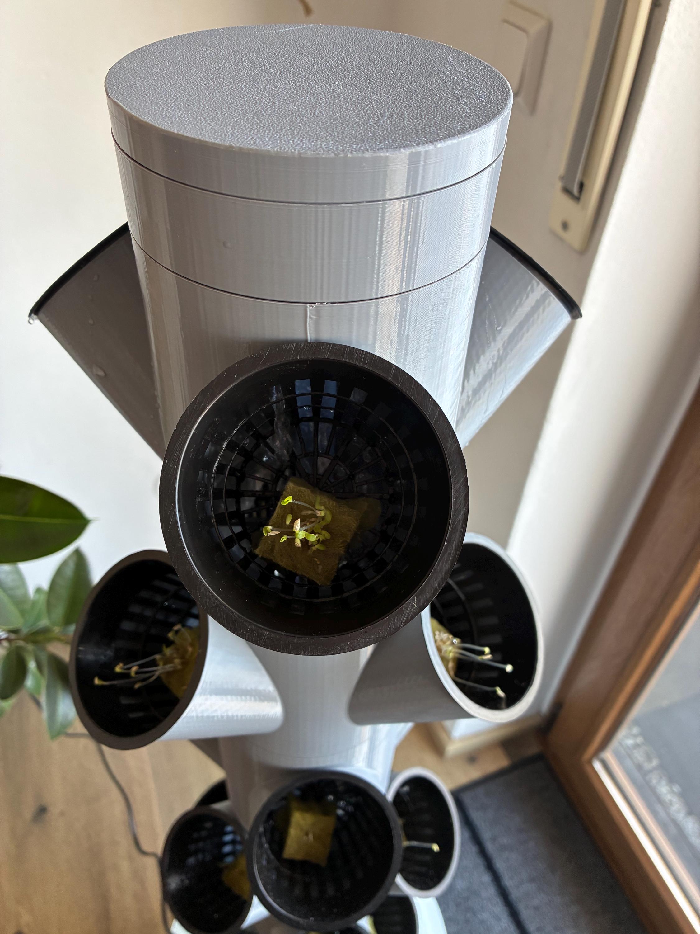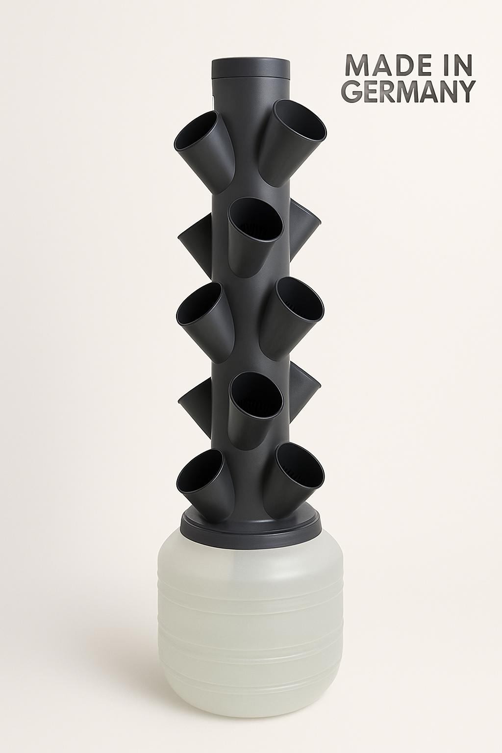Sustainable hydroponic planting tower made of PETG – ideal for balconies and indoor gardening. 3D-printed, robust, food-safe, and space-saving. Perfect for herbs, lettuce, and more! 🌿