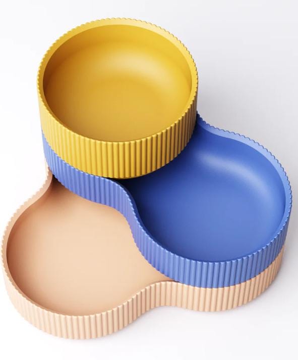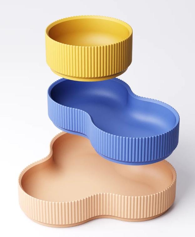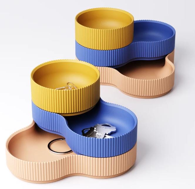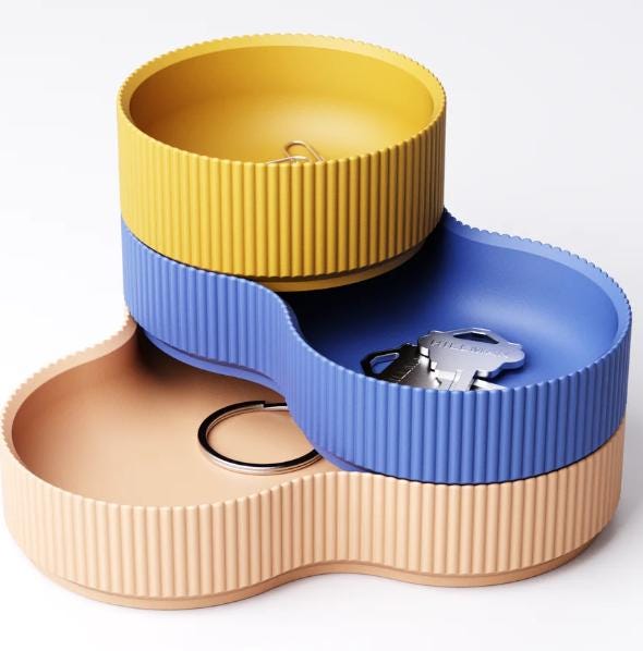 These modern, stackable bowls were 3D-printed with meticulous attention to detail and are the perfect combination of design and functionality. They're ideal for stylishly storing keys, jewelry, coins, paper clips, or small everyday items.