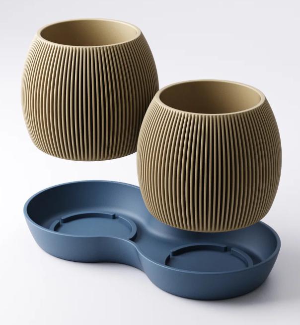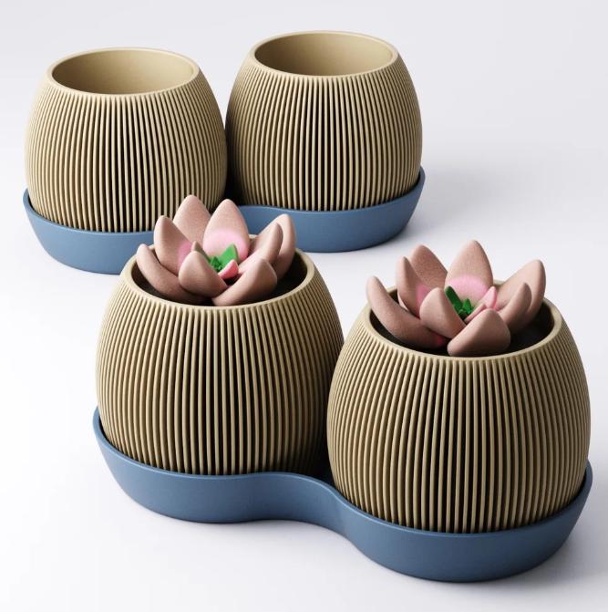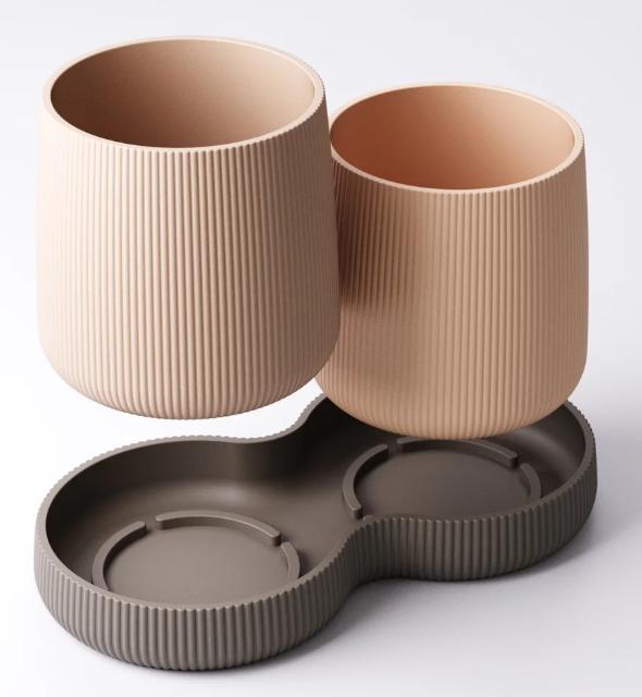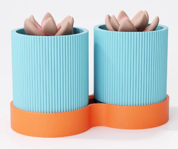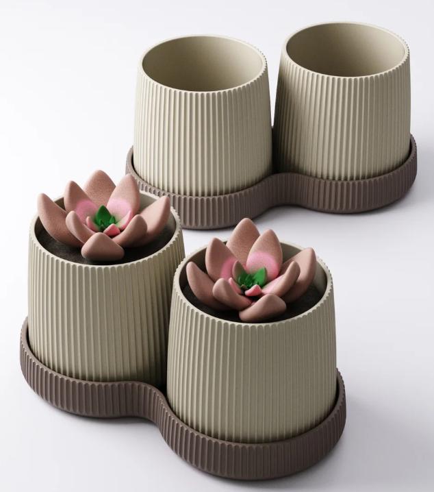 This modern 3D-printed Duo Vase combines two planters in a stylish, organic design. Perfect for small plants, succulents, or dried flowers—and a real eye-catcher on any desk, shelf, or windowsill.