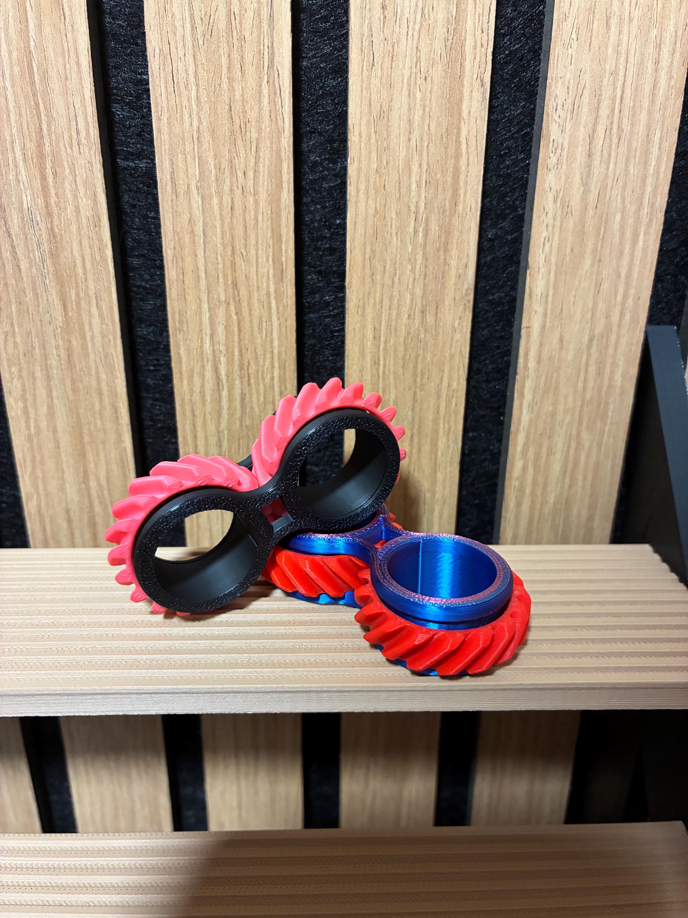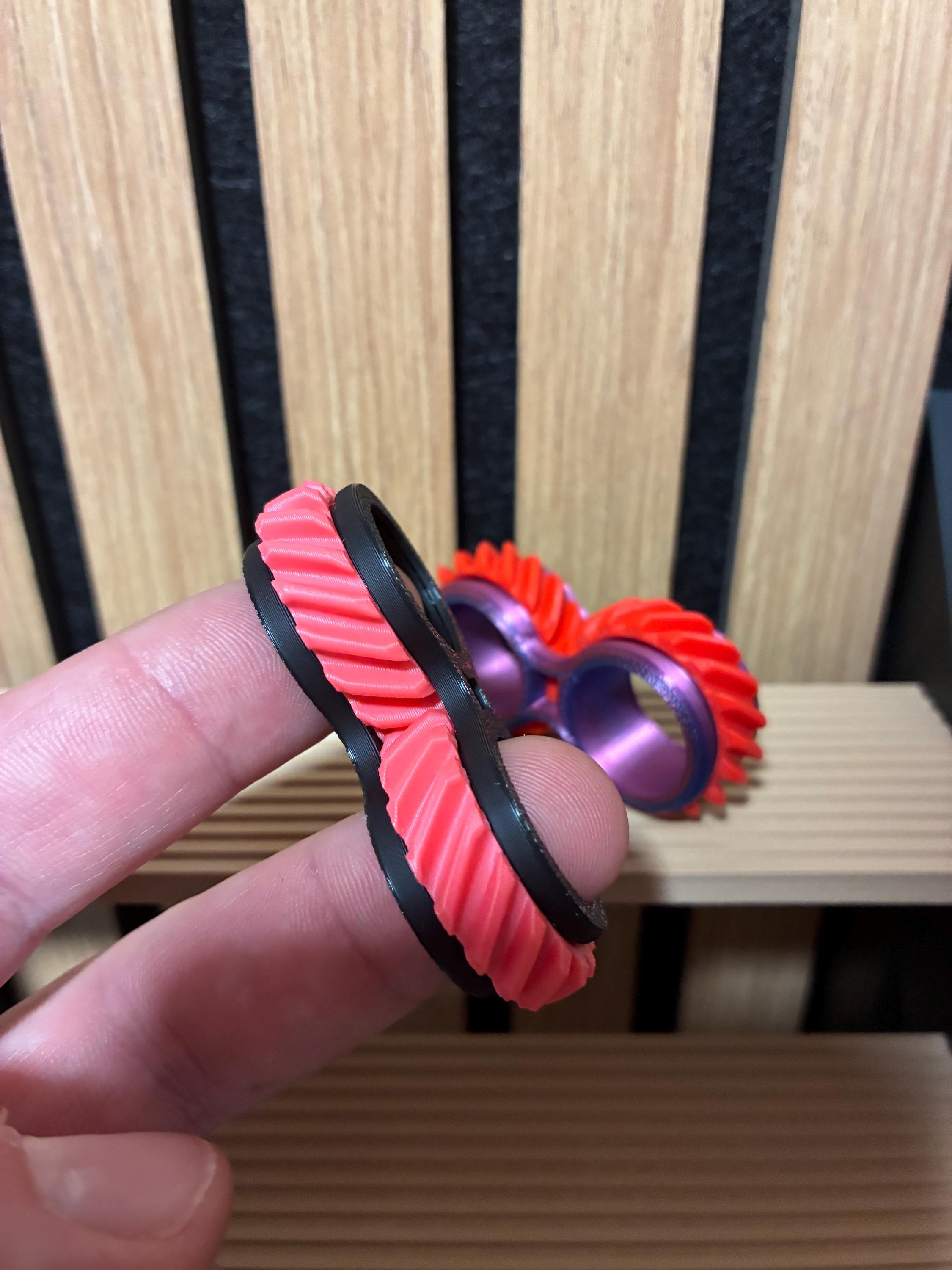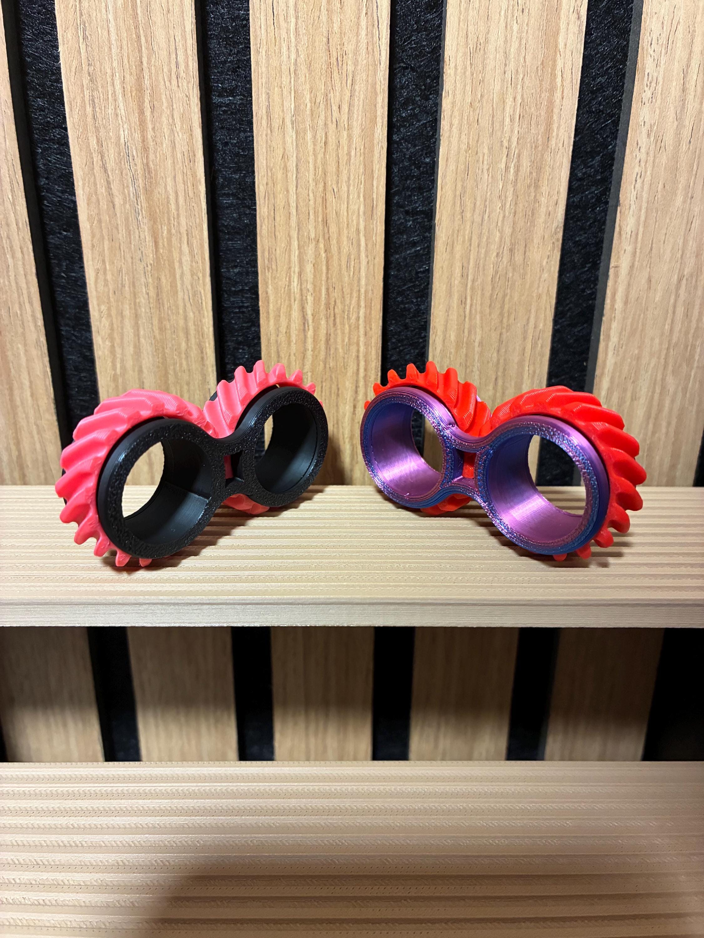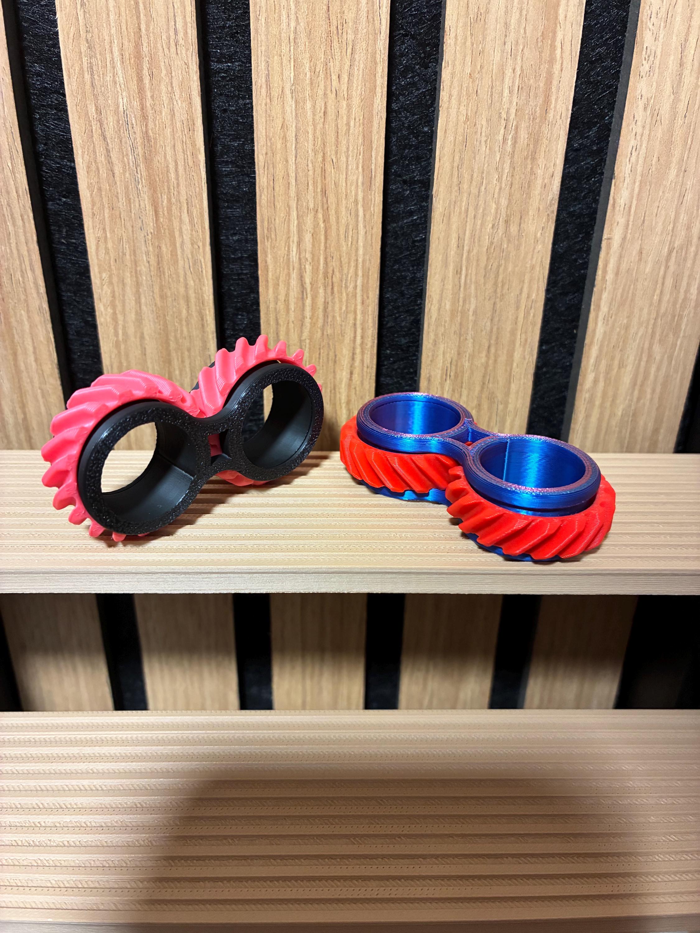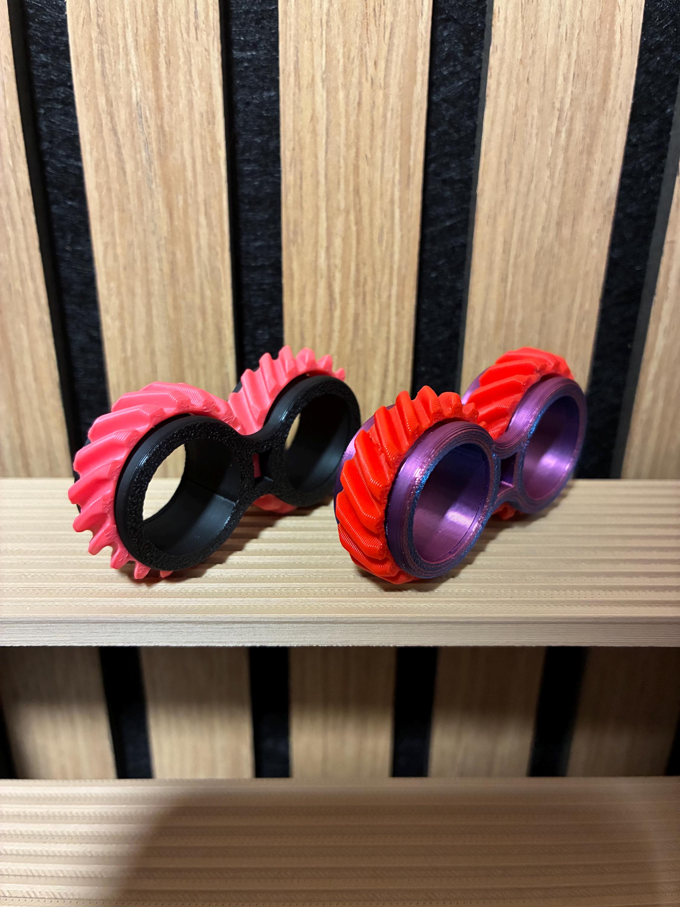 This unique 3D-printed gear toy consists of two counter-rotating gears that spin smoothly and evenly. Ideal for relaxing, contemplating, or simply playing – whether in the office, at school, or at home.