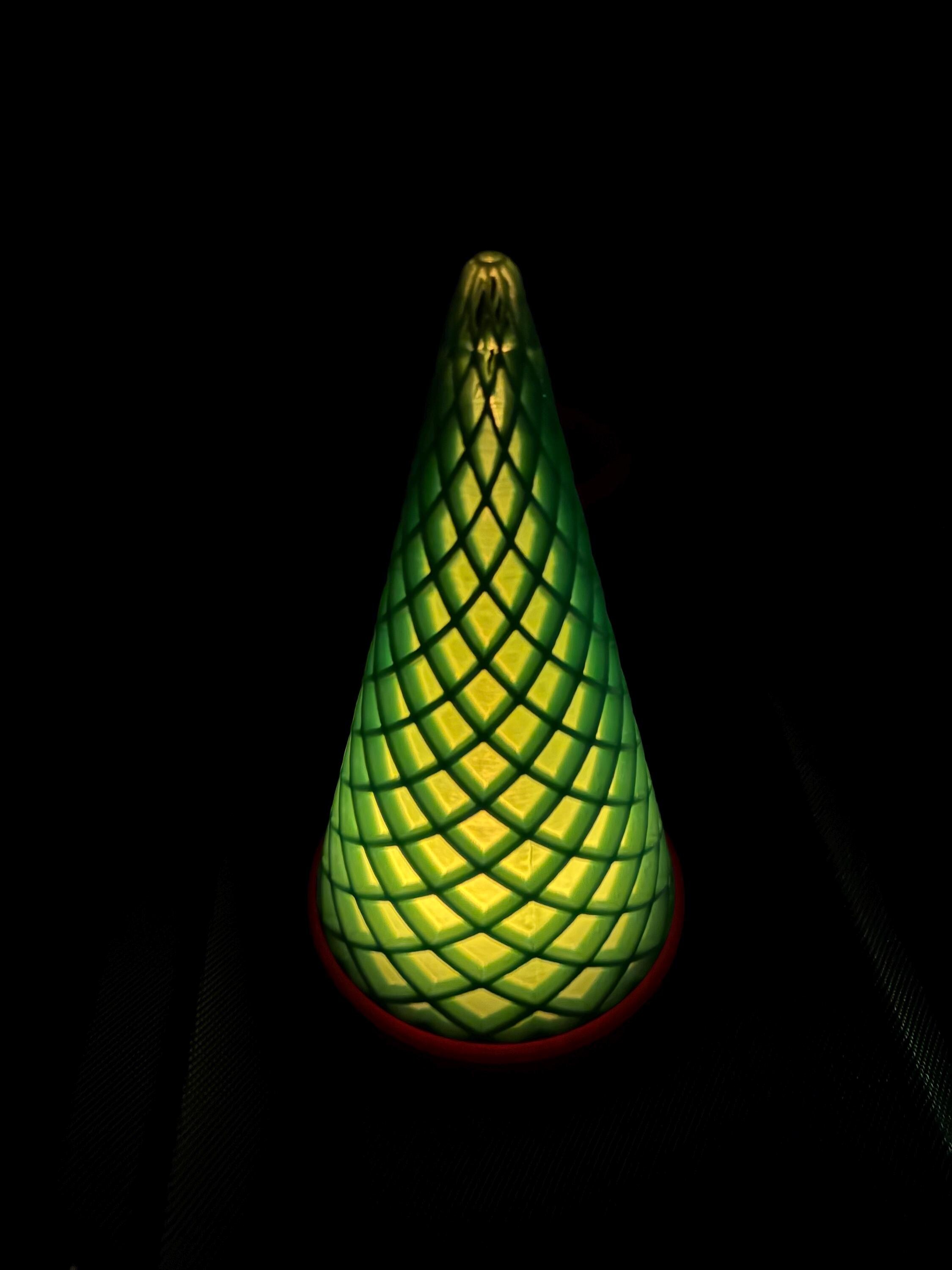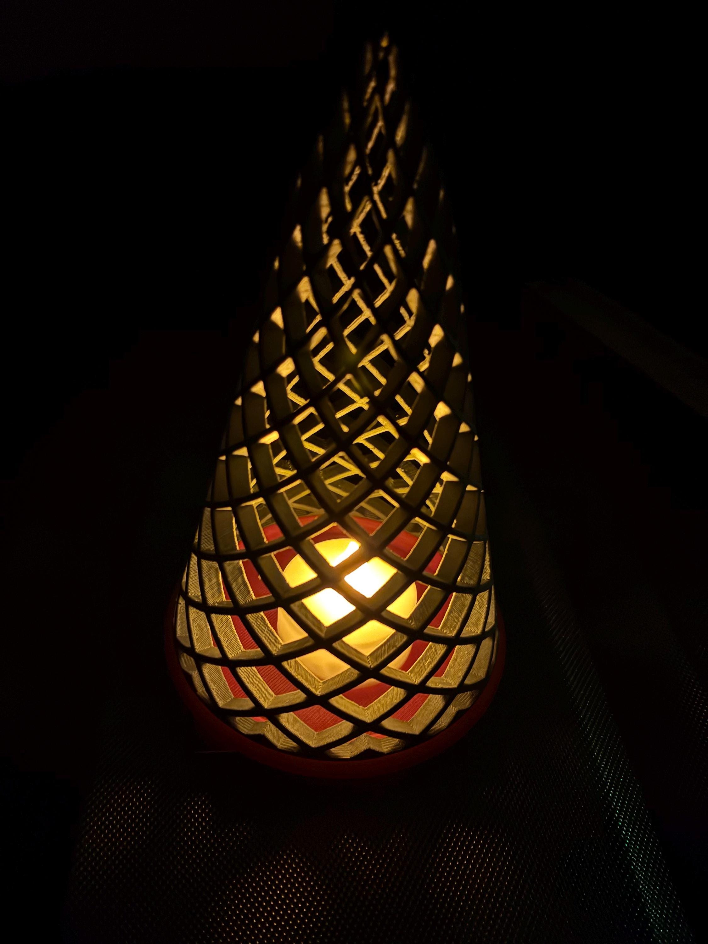 Made from environmentally friendly PLA plastic – lightweight, sturdy, and 100% plastic-free in its production. The openwork design allows light sources to shine through beautifully, creating a warm and inviting atmosphere.
