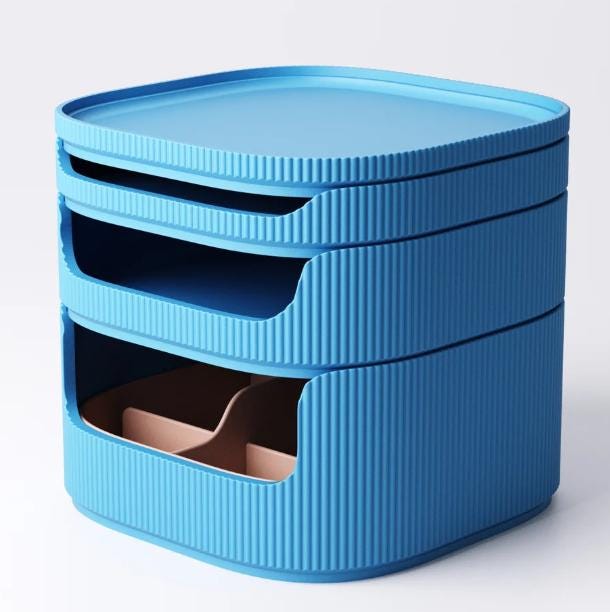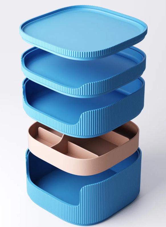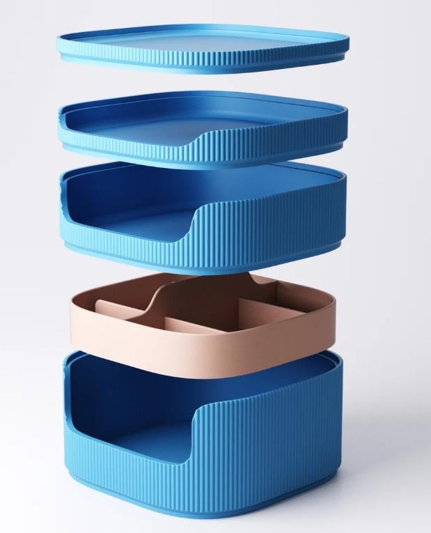 This modern 3D-printed organizer consists of three stackable trays, a lid, and an insert for the large tray. Ideal for stationery, makeup, jewelry, small items, or anything else that's lying around.